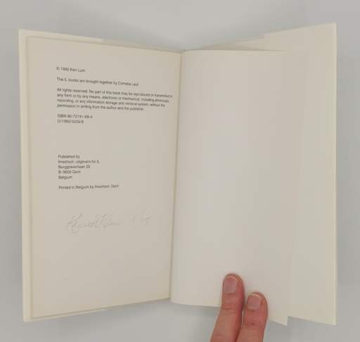 Gent (Belgium); Imschoot, uitgevers; 1993 IL-series, 44p., 14,8 x 21 cm, sewn, printing: black, grey, 8 pantome colours Luxury edition of 35 copies, signed and numbered, linen hardcover + wrapper Ref.1, Ref.2 Ex. 11/35 Condition : very good, very slight signs of wear.