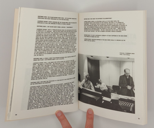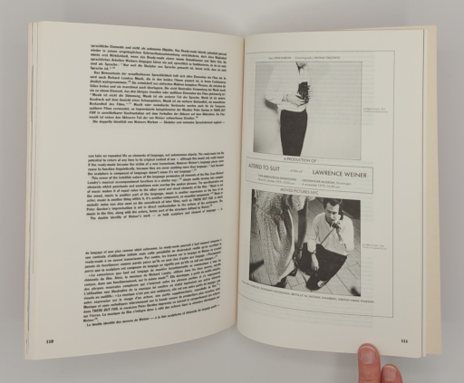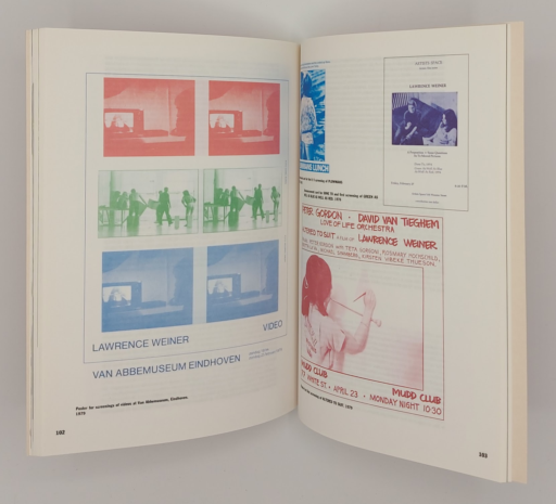 A catalogue raisonné of Weiner’s film and video work, representing an important, and rarely seen aspect of his continuing investigation into the relationship of language, architecture and the visual arts. Includes an interview with the artist, conducted by Baromeu Mari, as well as an essay by Dieter Schwartz. In addition, production stills, synopses (written by Alice Weiner) and reproductions of original posters situate Weiner’s work in the context of the independent film and video movement of the 60’s and 70’s.