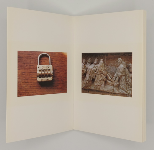 This artist’s book presents two different narratives shot on location, as a filmic series of still photographs, in the coastal region of Brittany, France. Each ‘bande de lecture’ (reading band) is presented in the precise order in wich the richly structured photographs were taken.
