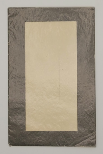 Poème sur papier noir, Negresco et Fantasia, dans une enveloppe en forme de lettre mortuaire, illustré d’un collage.