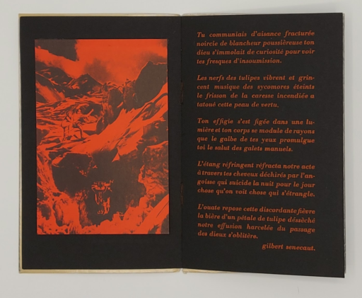 z.p. ; [Gilbert Senecaut] ; z.j. 20 x 12,5 cm, 7 pp. Ex. 33/100