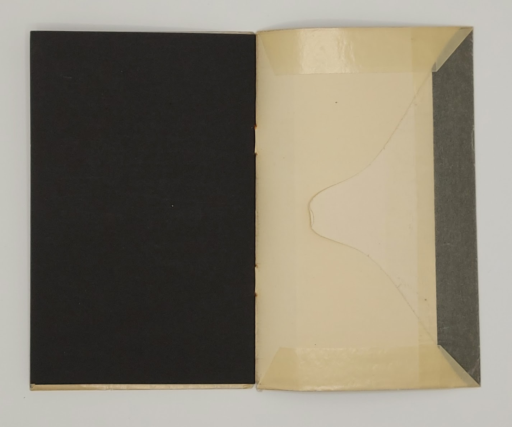 Gedicht op zwart papier, Negresco en Fantasia, met doodsbrief als omslag, geïllustreerd met een collage.